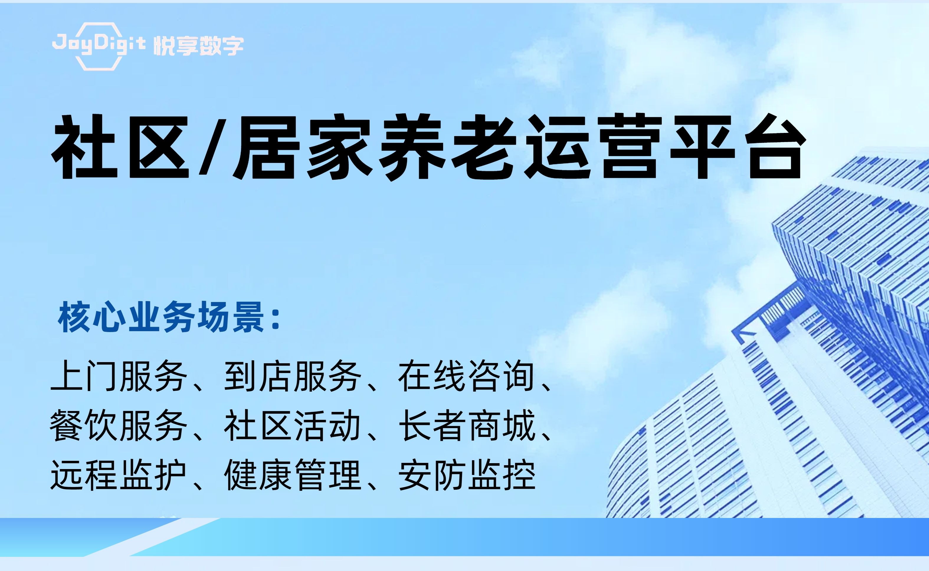 北京悅享數(shù)字科技有限公司(JoyDigit?,簡稱悅享數(shù)字?)作為養(yǎng)老行業(yè)數(shù)字化轉(zhuǎn)型的引領(lǐng)者,以“數(shù)字驅(qū)動健康?,智慧賦能養(yǎng)老?”為愿景,以iSpeed作為養(yǎng)老行業(yè)數(shù)字化轉(zhuǎn)型的標(biāo)準(zhǔn),通過融合大數(shù)據(jù)、人工智能、物聯(lián)網(wǎng)、區(qū)塊鏈和移動互聯(lián)等創(chuàng)新技術(shù),打造了領(lǐng)先的數(shù)字化養(yǎng)老解決方案-悅享養(yǎng)老數(shù)字化平臺(JoyDigit NexSight Platform),端到端覆蓋了數(shù)字化渠道與銷售、業(yè)務(wù)流程標(biāo)準(zhǔn)化與智...